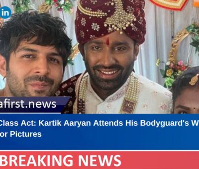 Bollywood's chocolate boy Kartik Aaryan attended his bodyguard Sachin's wedding and made it even special by posing for pictures with the newly-weds.